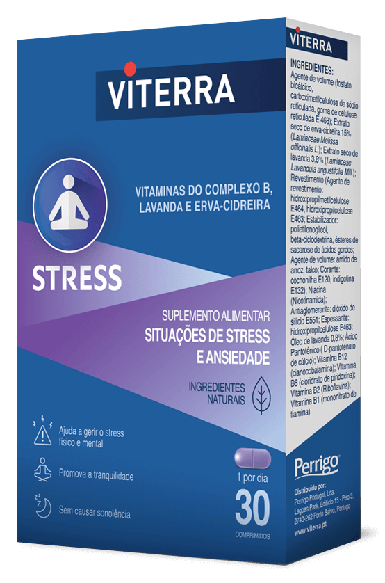Viterra Stress, à base de ingredientes naturais como a lavanda e a erva-cidreira, ajuda a gerir o stress e ansiedade, promovendo uma sensação de relaxamento, bem-estar e tranquilidade.